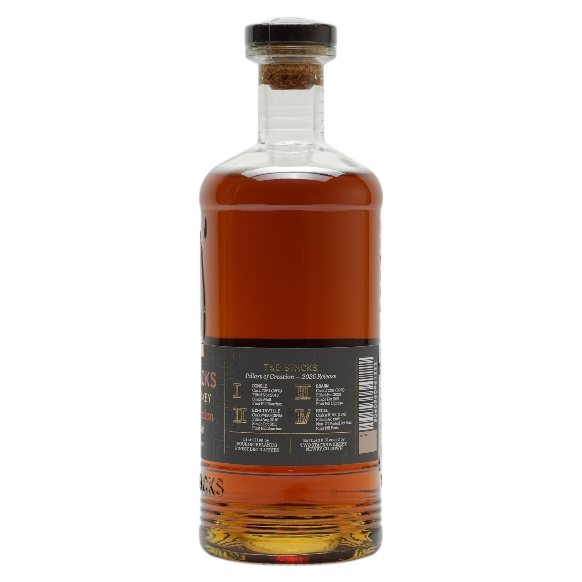 Pillars of Creation Vintage 2025 is a marrying of distillate from Dingle Distillery, Echinlinville Distillery, Boann Distillery & Micil Distillery, patiently finished in a single Palo Cortado Butt. A first ever blend of its kind.
